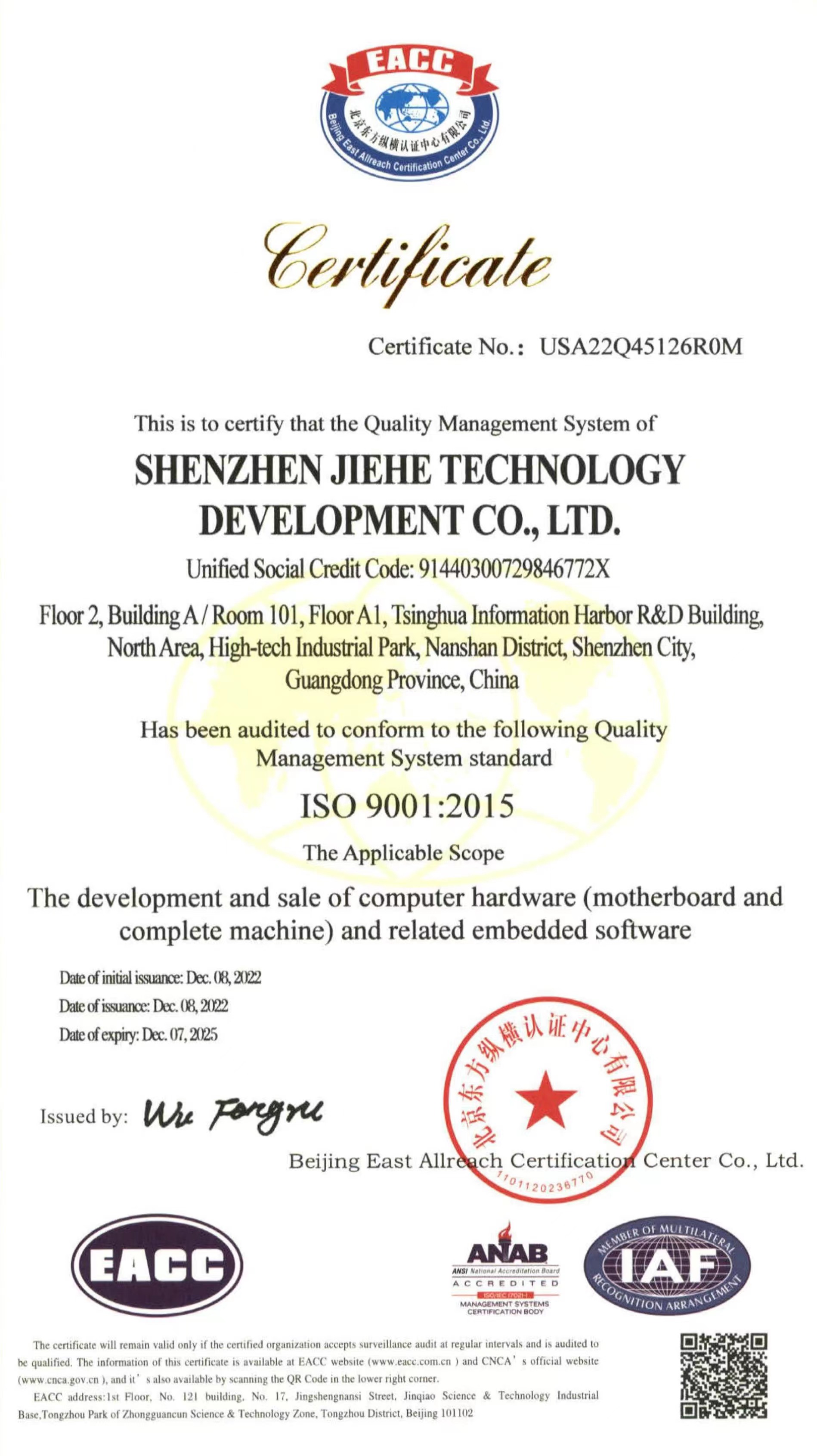 ISO9001质量管理体系认证作为国际标准化组织的管理性质标杆,它的地位可见一斑,其认可彰显了沐鸣科技的体系管理以及产品的质量。沐鸣科技在过去几年不断提升设备标准化生产的能力,减少人为质量问题,把ISO9001质量管理体系理念贯穿于产品研发—生产全流程。