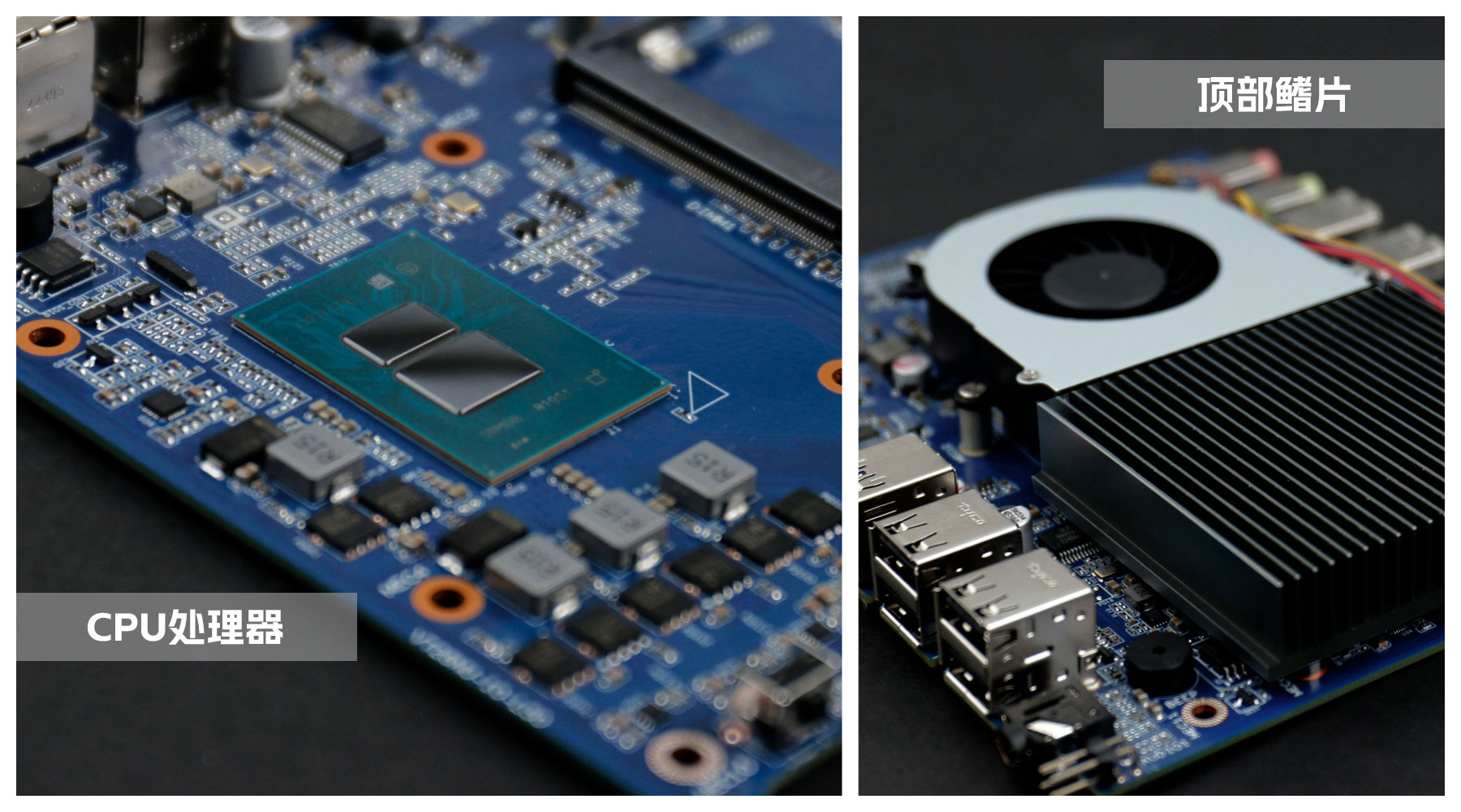 主板是沐鸣桌面云终端Y-BOX S2的核心部件,拆开主板上的顶部铝制鳍片与风扇,整体配色是常规的深蓝色,由沐鸣自有工厂倾力打造,CPU采用板贴的形式,表面涂了一层散热膏用于导热,可以支持intel新一代Alder Lake-N平台处理器,为英特尔首款基于 7nm 的产品线,最高可支持到8核,采用大小核(E核、P核)的全新架构,在同等功耗下有更优异的性能表现。