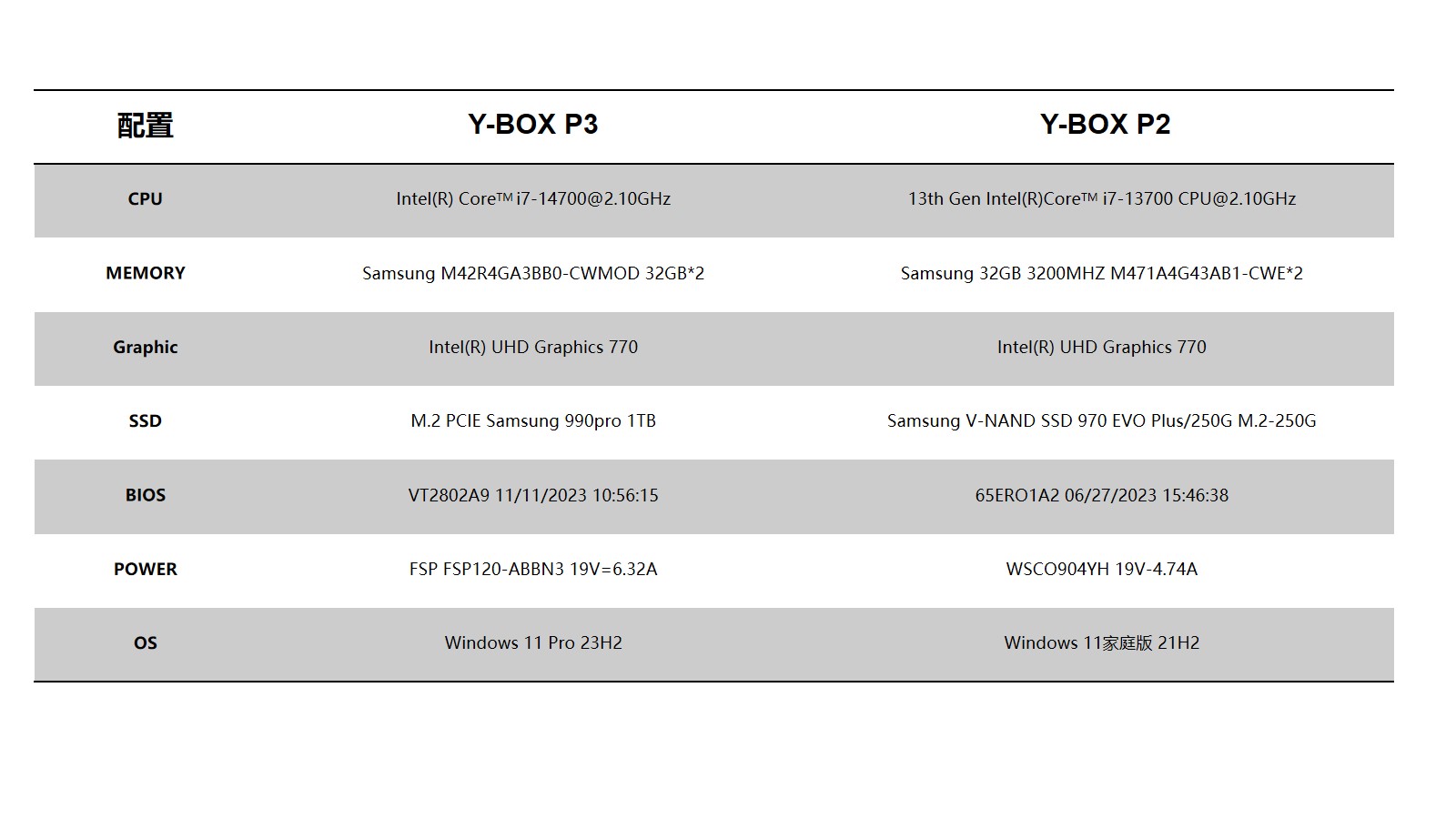 作为Y-BOX P2的迭代产品,沐鸣选取了以下配置,将Y-BOX P3与Y-BOX P2进行对比分析,结论先行:两款产品跑分数据表示,Y-BOX P3的跑分数据及稳定性能明显领先Y-BOX P2。