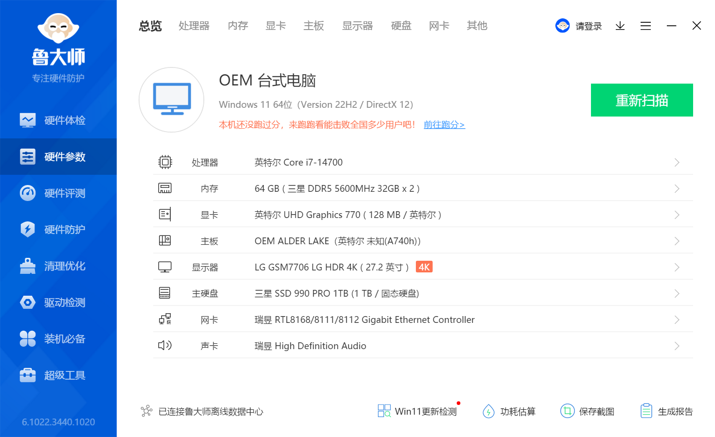 PC Mark 10 含有一整套全面的测试项,涵盖现代办公场所中的各种任务,偏向于家用和办公场景的性能测试软件,这些测试总共包括三个大的子项目:常用基本功能(程序启动、视频会议、网页浏览)、生产力(表格和文档)、数位内容创作(照片编辑、渲染和视频编辑)。
