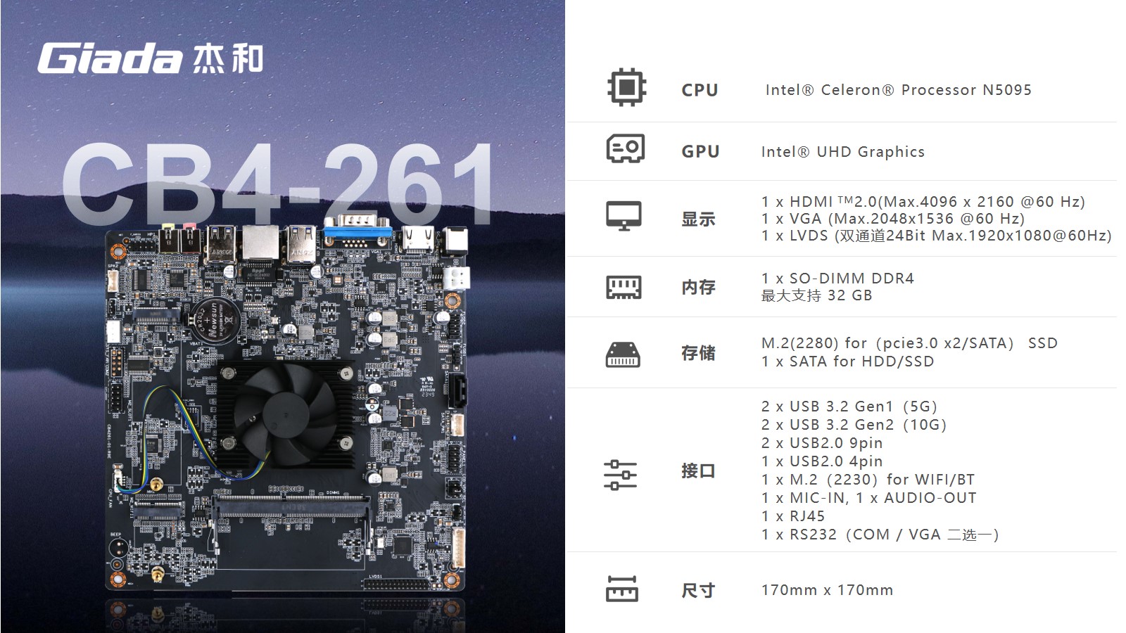 一款高性能的主板是终端机稳定运行的关键,基于Intel Jasper Lake平台的N5095芯片,沐鸣科技推出了一体机专研主板CB4-261。