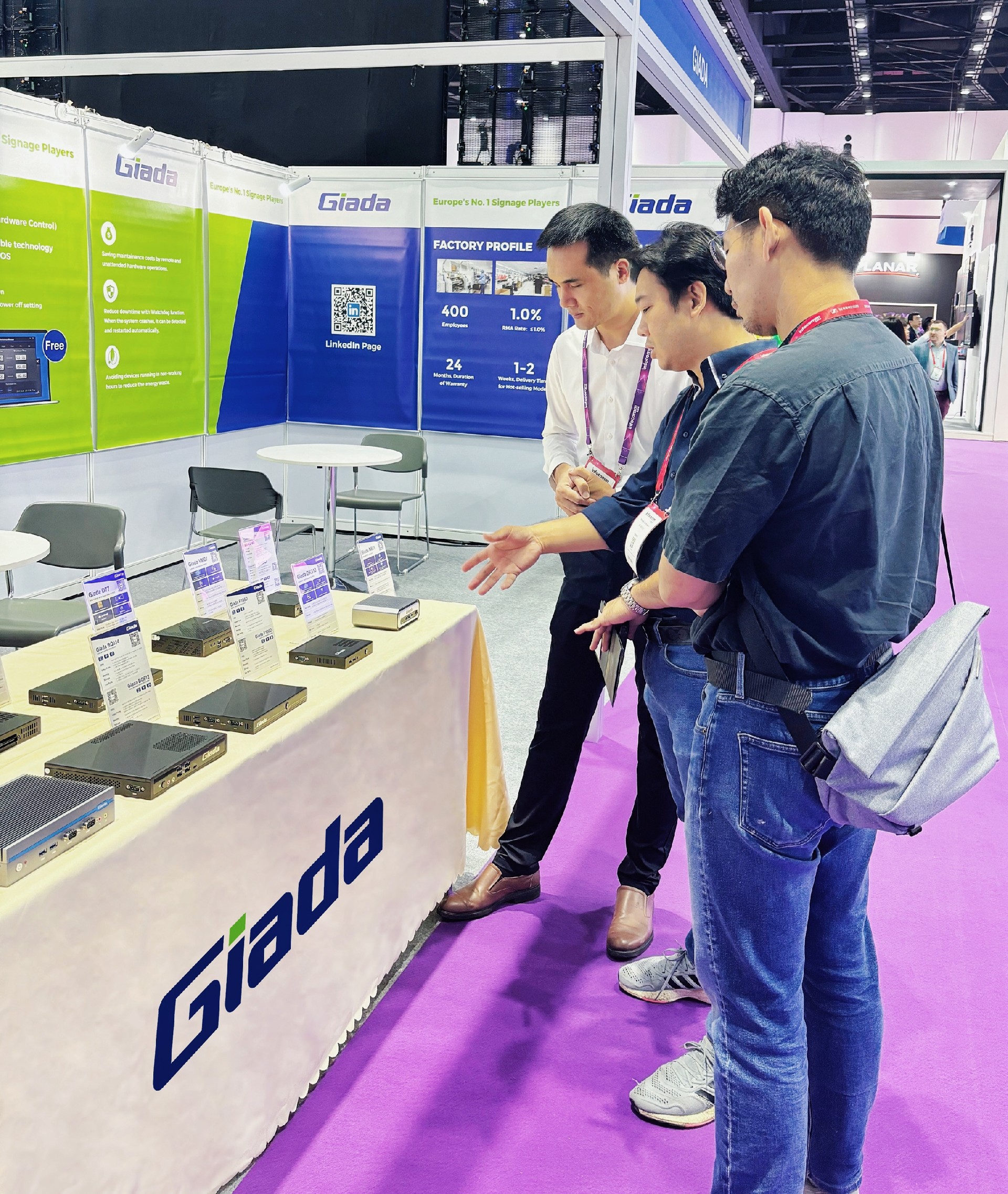 除此之外,Giada沐鸣科技展示一系列数字标牌播放器、户外嵌入式整机、OPS/SDM及嵌入式主板等明星产品,并带来一系列量身定制的解决方案,以满足东南亚地区的具体需求。