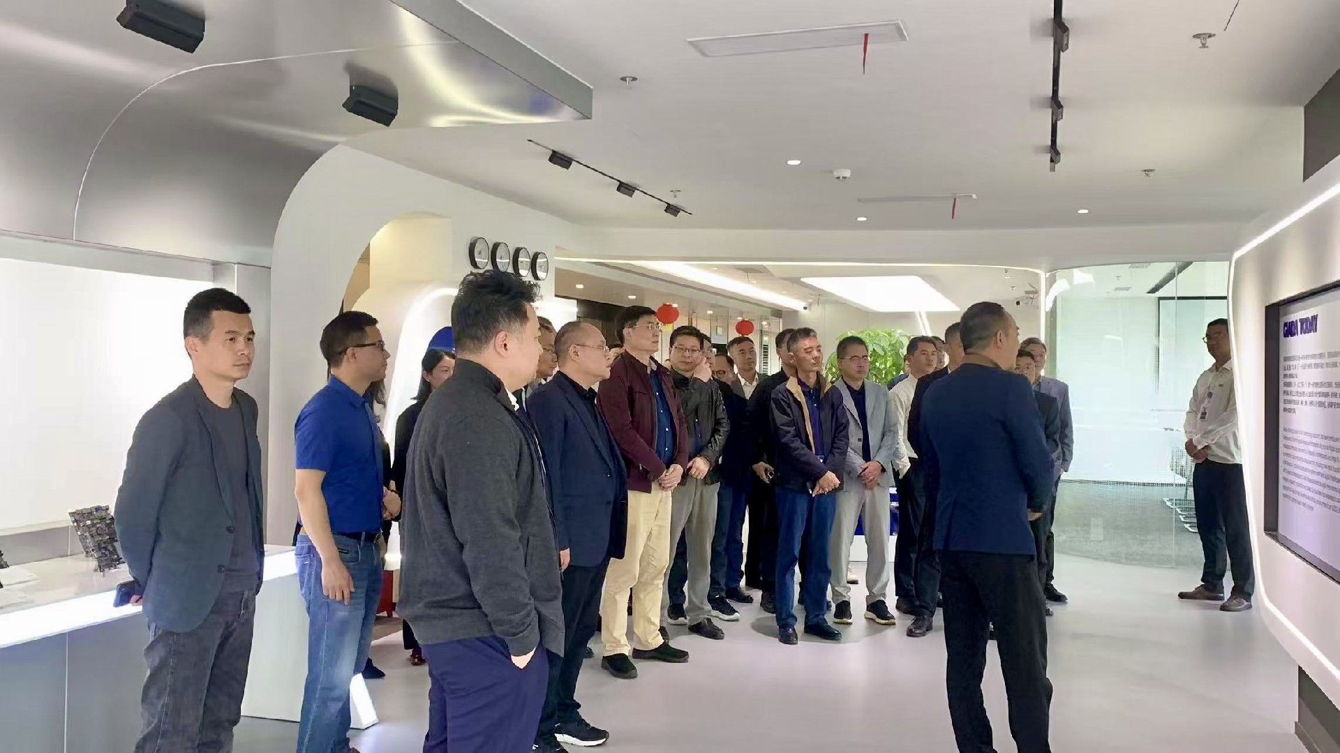 作为东道主,沐鸣科技带领与会嘉宾参观数字化展厅,重点呈现企业历程、AI算力产品以及一系列自主研发成果。展厅内多项专利技术及行业解决方案,直观展现了企业在智能制造、智慧零售等领域的技术沉淀,为后续研讨提供了实践参考。