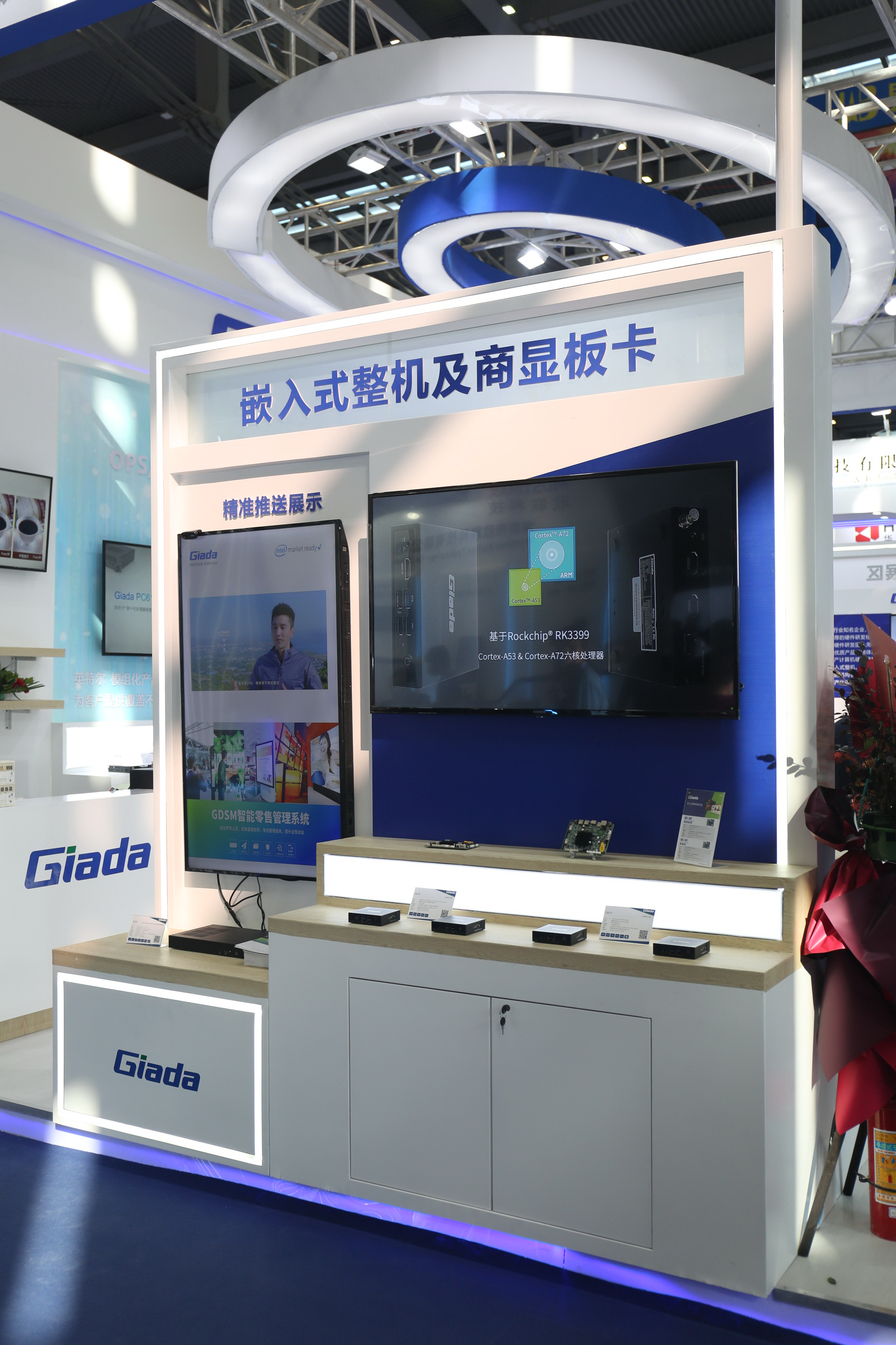 紧邻ARM架构商显产品集的精准推送展示区与零售门店模拟展区,共同组成了本届展会沐鸣科技展位的一大精彩设计。场景展现了GDSM智能零售管理系统在零售门店场景下的展示效果,顶部的数字标牌由GDSM系统推送内容,模拟搭建了针对人流动线的广告精准推送形态。