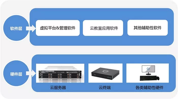 云终端采用嵌入式芯片功耗更低,使用寿命更长,硬件故障后只需直接换下就可以继续使用,同时云终端本地不运行数据和计算,所以桌面数据的管理维护都能通过服务器来完成的。