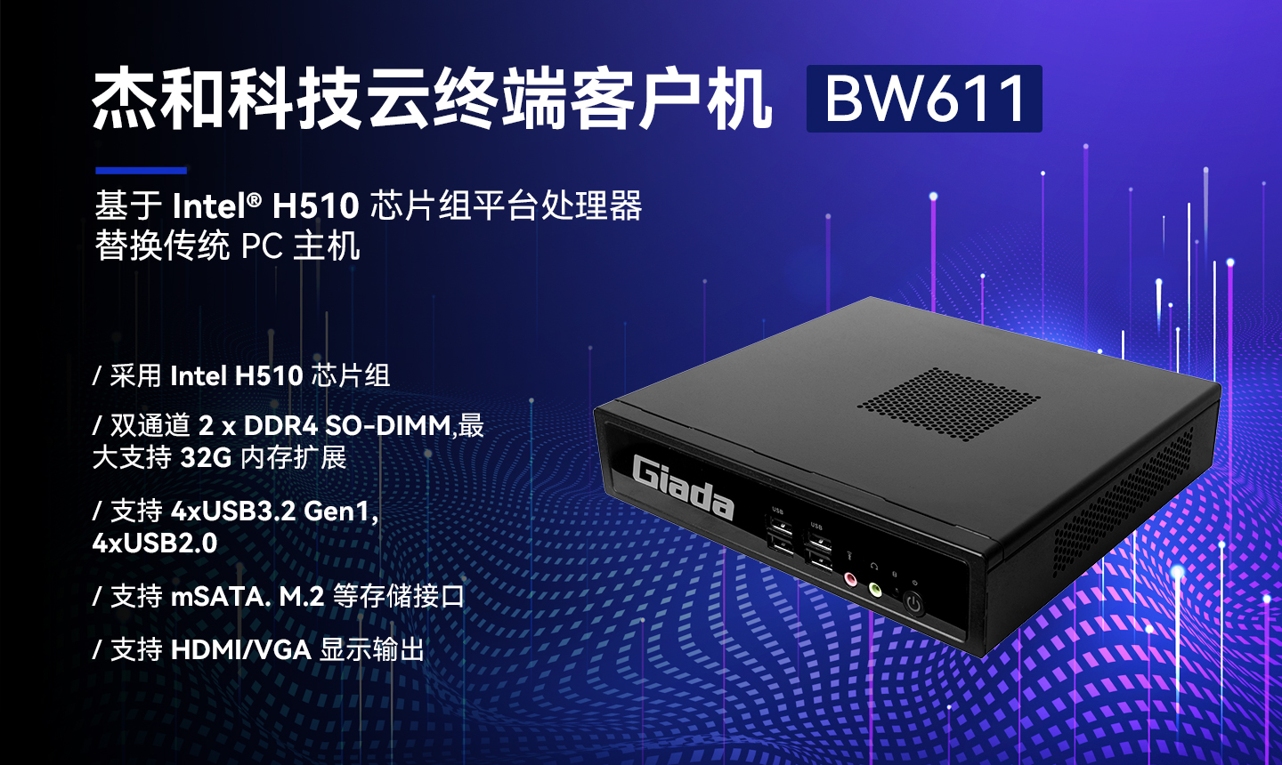 沐鸣科技云终端BW611体积小巧、双通道内存,性能强悍,接口丰富。