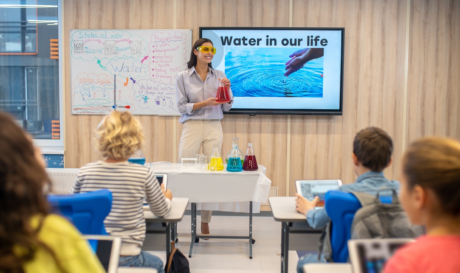 在传统课堂教学的班级授课中,教学主要通过书本的文字图片、老师的讲解进行知识输送,教学模式单一,课堂缺乏生动性和主动参与的积极性。而沐鸣构建的数字化教学环境中,通过电子白板的应用,用“沉浸式+体验式”的教学方式,趣味性且可视化的展示课程内容,将传统的教室升级为更为智能的数字化“教学空间”,从而推动教学模式的数字化变革。