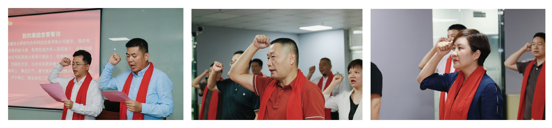 在签约仪式的最后时刻,董事长林坤杰先生与全体股东合伙人共同宣读誓词:我自愿成为深圳市沐鸣科技发展有限公司股东,做沐鸣科技公司光荣的奋斗者,我将发扬沐鸣人艰苦奋斗、开拓创新的精神,为公司实现做大做强不遗余力;我将践行“共创、共担、共享”的股权文化,与企业发展荣辱与共;在工作中主动担当、迎难而上,廉洁正气、遵守原则,时刻维护公司的利益,以身作则、严于律己,做全体员工的楷模!沐鸣齐心协力,斗志昂扬,信心满满!