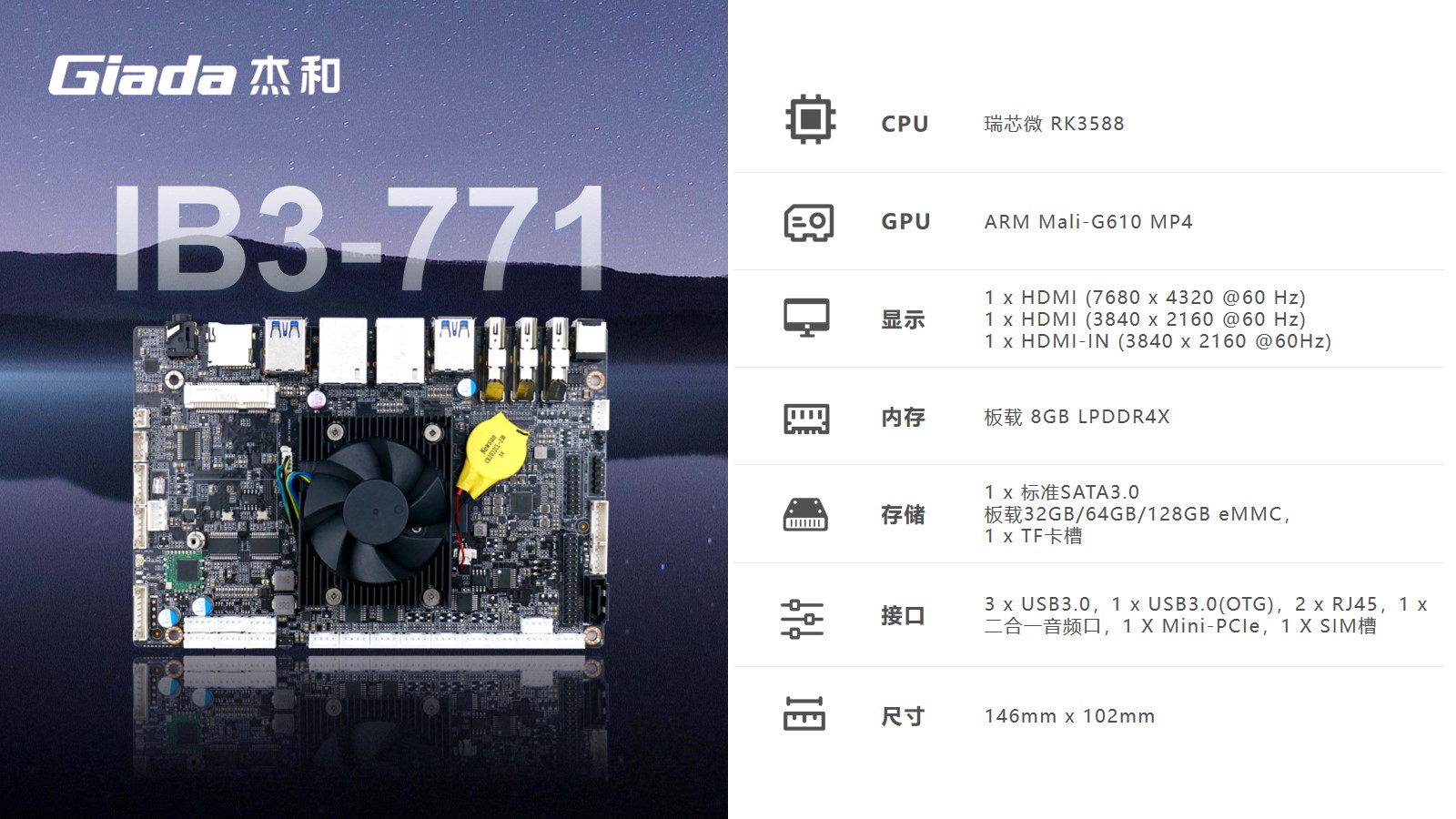 沐鸣科技嵌入式主板IB3-771是8K人工智能主板,拥有轻算力的它可用于机器人、边缘计算、智能NVR、智能汽车、智慧大屏、AR/VR、ARM PC、智能自助终端等领域,还可用于监控、工业、餐饮、智能交通、文娱产业等对超高清视频需求旺盛的行业;